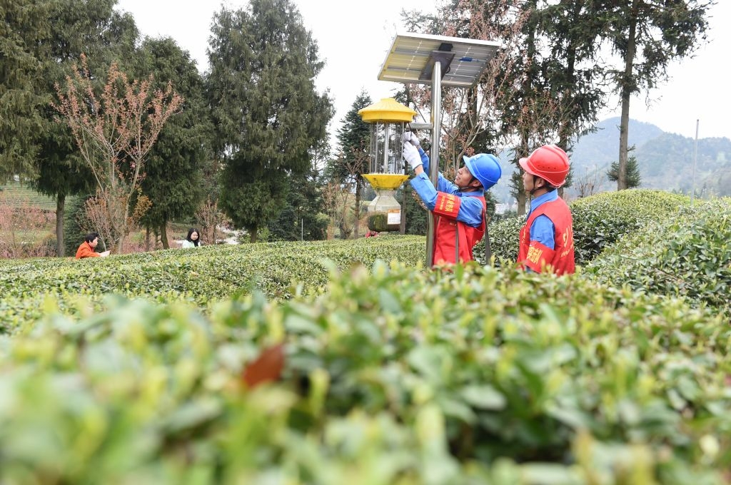 3月25日,贵州电网铜仁印江供电局”电亮先锋党员服务队“走进辖区茶叶种植基地,对基地防蚊用电设备开展检查。陈举 摄1春茶吐翠,茶农欢笑。连日来,随着气温回升,铜仁市印江土家族苗族自治县新寨镇团山村宏源茶业种植基地连片的茶山上纷纷冒出了新绿,春意盎然的茶垅间,采茶人若隐若现,嬉笑声声传来,伴随着清新的茶香,呈现出一幅生机勃勃的春日画卷。 为确保在春茶期间供电的可靠性,铜仁印江供电局对全县茶企进行“网格化”划分,组织“电亮先锋.党员服务队”14支60余人前往各辖区茶厂开展“点对点、面对面”用电服务,用实际行动全力保障春茶期间供电充足。 据了解,近年来,印江自治县在全县形成龙头企业引领、区域中心企业带动、专业合作社参与发展的良好格局,特别是今年在东西部协作支持下,东莞印印两地通过“4+”模式,进一步推动“黔货出山”,拓宽尖端农产品销售渠道。据统计,该县共有生态茶园26.5万亩,投产茶园22.38万亩,2022年,产量预计可达2.2万吨,产值可达到24.13亿元。(陈举 摄)(6/6)