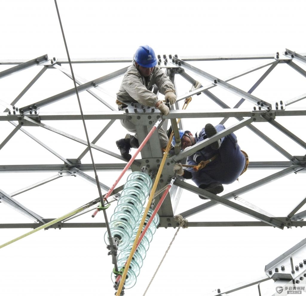 南方电网贵州公司员工对220千伏线路上进行检修。(陈举 摄)1陈举 摄(2/3)