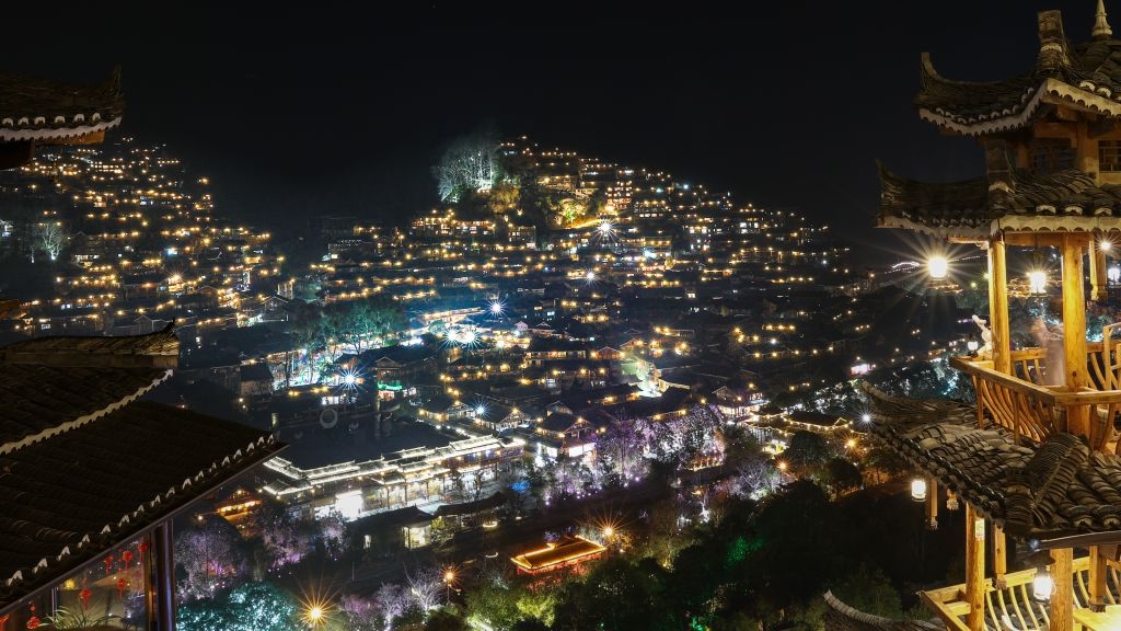 千户苗寨42023年2月19日,拍摄于千户苗寨景区。(4/5)