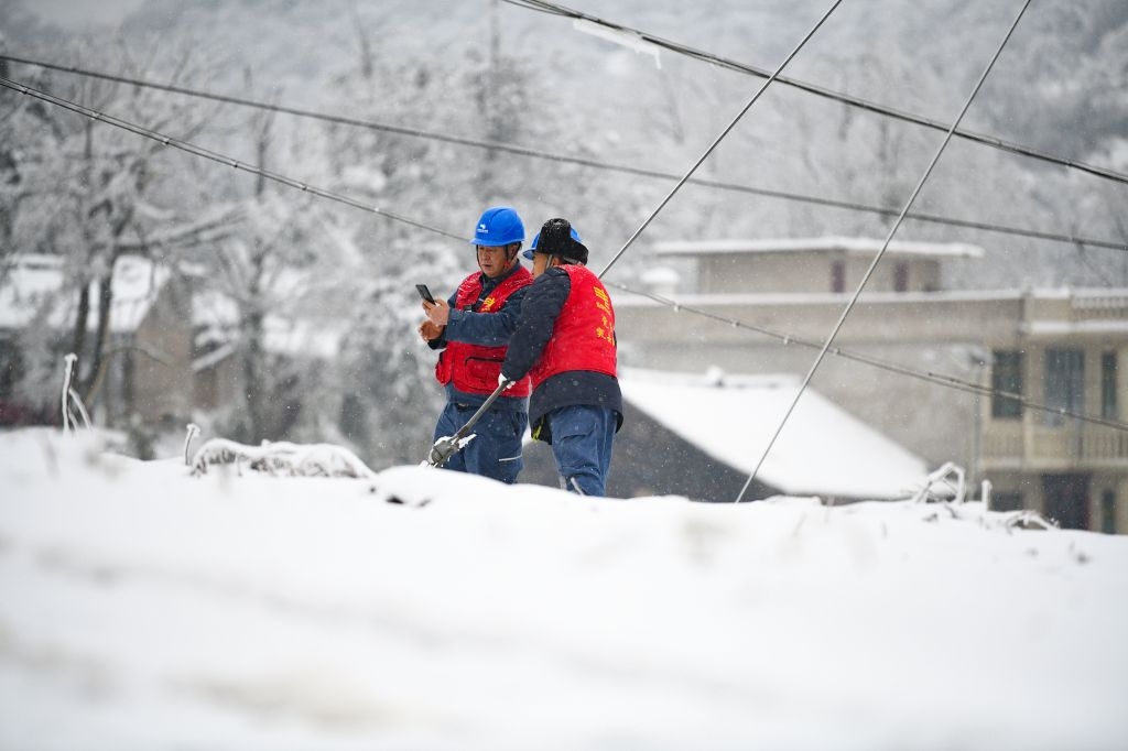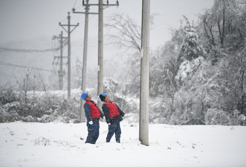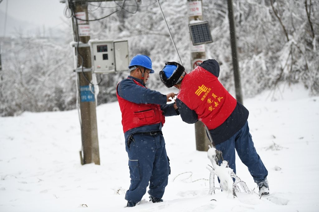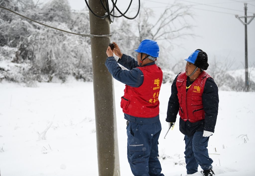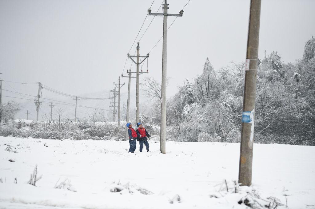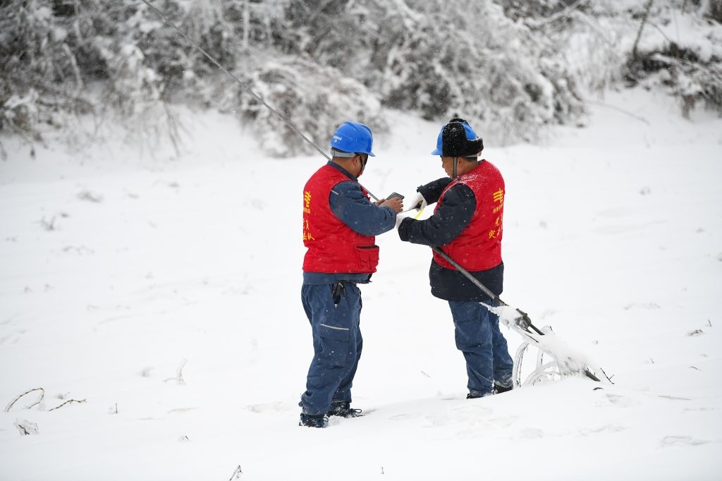 2022年2月2日,贵州省多地再次出现低温雨雪冰冻灾害天气,为保障电网安全稳定运行。南方电网贵州凯里施秉供电局党员突击队对高海拔地区10千伏配电线路,开展观冰测量特巡特维,确保人民群众春节期间安全可靠用电。