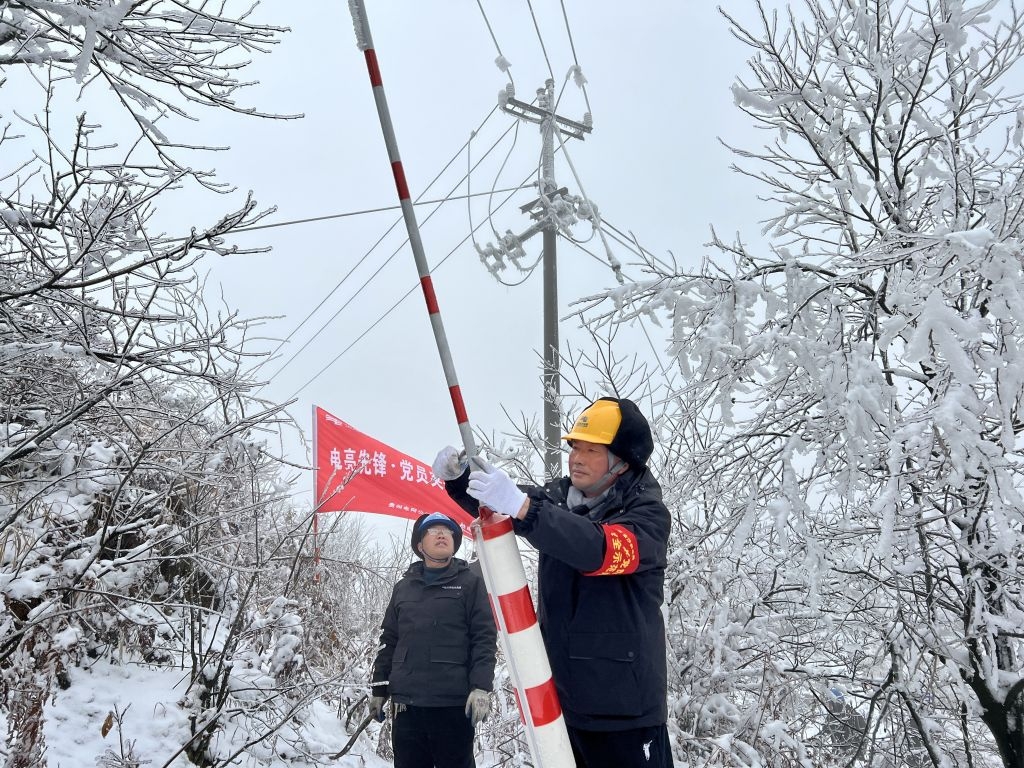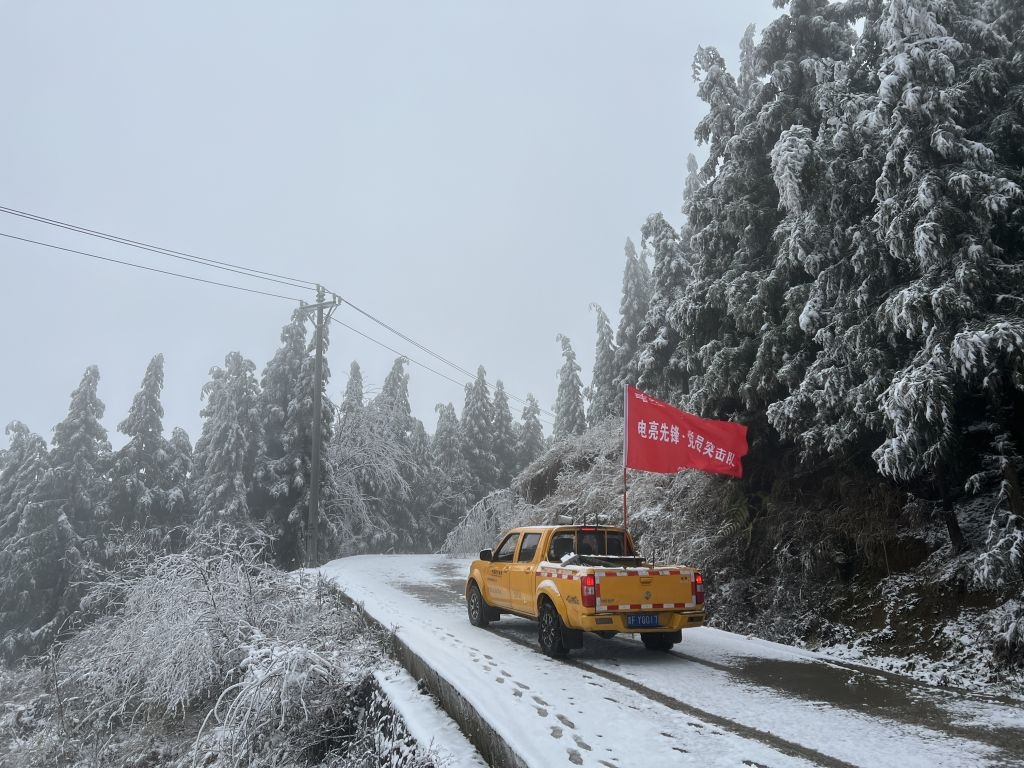 2022年2月7日,新一波冷空气侵袭贵州金沙县,毕节金沙供电局新安供电所党员先锋队巡视10千伏石笋支线,排查安全隐患,确保百坪等4个村供电正常。工作人员偶遇树木断裂阻挡公路,齐心协力清理交通要道树障,保障沿线老百姓通畅出行。
