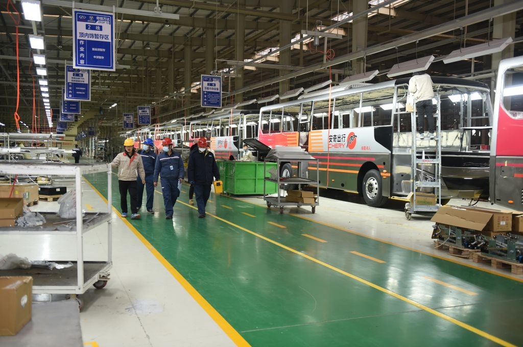 奇瑞万达贵州客车公司相关负责人向供电员工介绍整车生产情况。陈举 摄人勤春来早,奋进正当时。2023年春节过后,贵州各中小微企业陆续复工复产,用电需求持续增大,为确保企业生产用电正常,南方电网贵州电网公司主动作为、积极服务,提前通过电话、微信等方式联系客户,及时了解企业复产时间,建立服务台账,把保供应、促生产作为节后的首要任务抓紧抓实,组织“电亮先锋·党员服务队”走进企业,面对面沟通了解客户用电状况和困难,以充足的电力保障企业生产用电无忧。 针对各企业复工后用电实际,特别是工业园区企业,贵州电网公司采取“一站式服务”“零距离服务”,开辟“绿色通道”等举措,制定了一系列服务方案,与园区管委会实行“联席办”机制,及时掌握园区企业生产设备及用电需求的变化,加强沟通,提供差异化供电服务,为企业消除后顾之忧、吃下“定心丸”。(陈举 摄)(3/4)