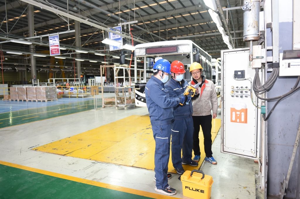 2月7日,贵阳小河供电局员工对奇瑞万达贵州客车公司生产车间用电设备进行检测。陈举 摄 1人勤春来早,奋进正当时。2023年春节过后,贵州各中小微企业陆续复工复产,用电需求持续增大,为确保企业生产用电正常,南方电网贵州电网公司主动作为、积极服务,提前通过电话、微信等方式联系客户,及时了解企业复产时间,建立服务台账,把保供应、促生产作为节后的首要任务抓紧抓实,组织“电亮先锋·党员服务队”走进企业,面对面沟通了解客户用电状况和困难,以充足的电力保障企业生产用电无忧。 针对各企业复工后用电实际,特别是工业园区企业,贵州电网公司采取“一站式服务”“零距离服务”,开辟“绿色通道”等举措,制定了一系列服务方案,与园区管委会实行“联席办”机制,及时掌握园区企业生产设备及用电需求的变化,加强沟通,提供差异化供电服务,为企业消除后顾之忧、吃下“定心丸”。(陈举 摄)(1/4)